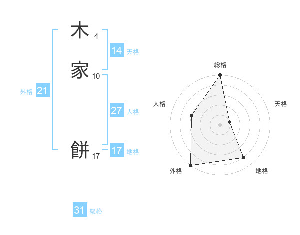 木家 餅さんの総格は31画の5点!