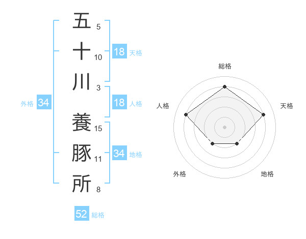 五十川 養豚所さんを姓名の画数から五運を鑑定