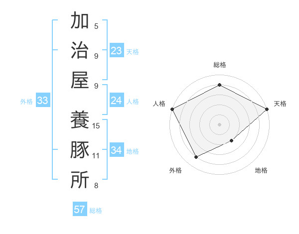 加治屋 養豚所さんを姓名の画数から五運を鑑定
