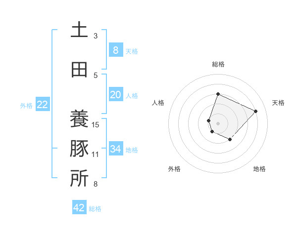 土田 養豚所さんの総格は42画の3点