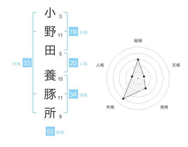 小野田 養豚所さんを姓名の画数から五運を鑑定