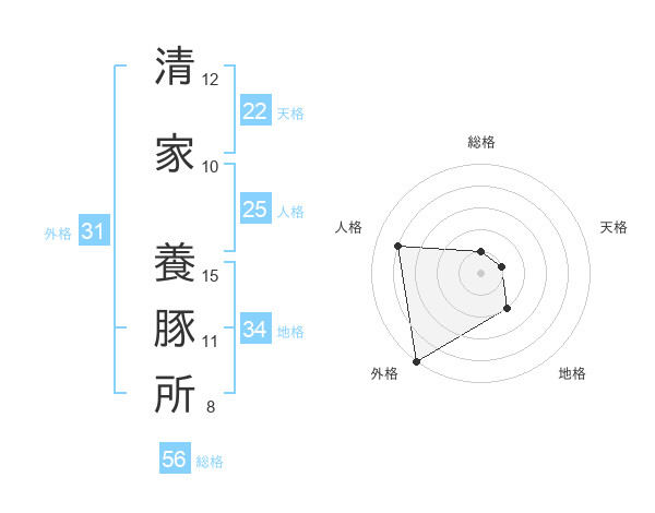 清家 養豚所さんを姓名の画数から五運を鑑定