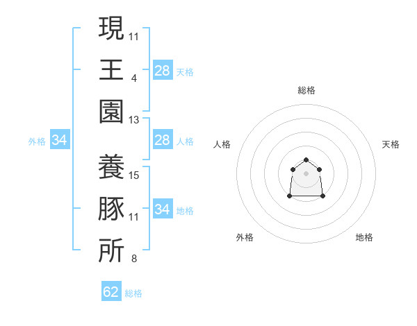現王園 養豚所さんの総格は62画の1点!