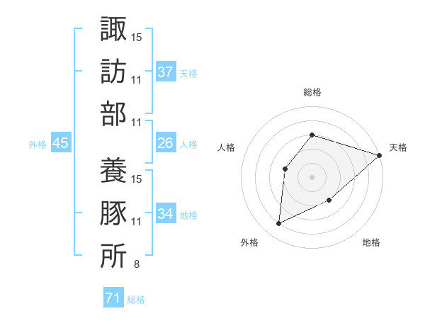 諏訪部 養豚所さんの総格は71画の3点!