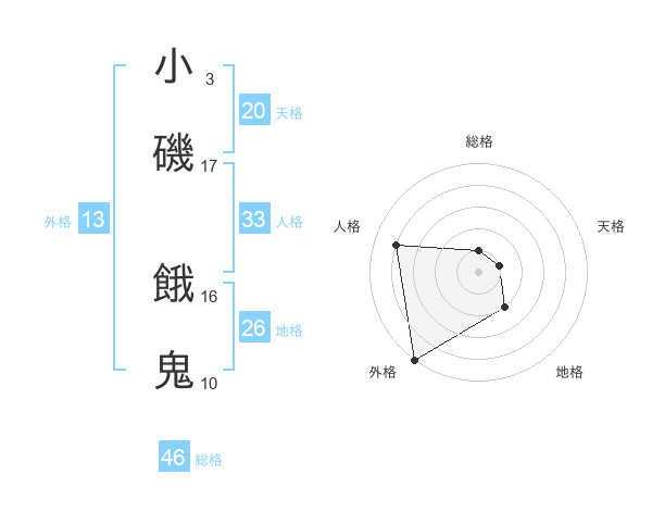 小磯 餓鬼さんの総格は46画の1点!