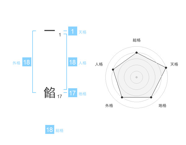 一 餡さんの総格は18画の4点!