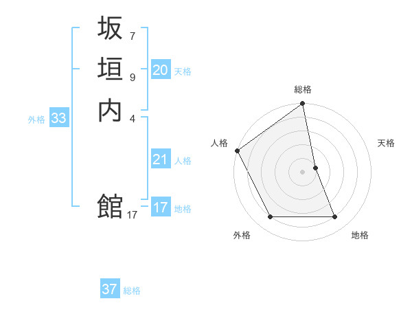 坂垣内 館さんの総格は37画の5点!