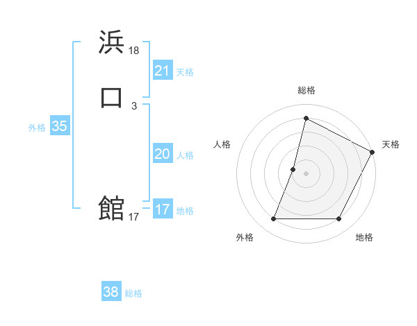 浜口 館さんの総格は38画の4点!