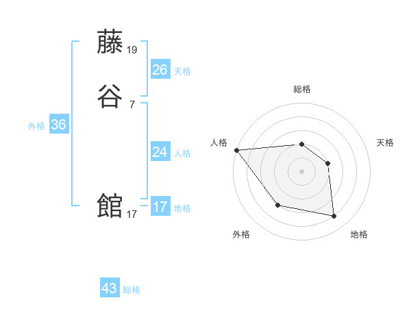 藤谷 館さんの総格は43画の2点!