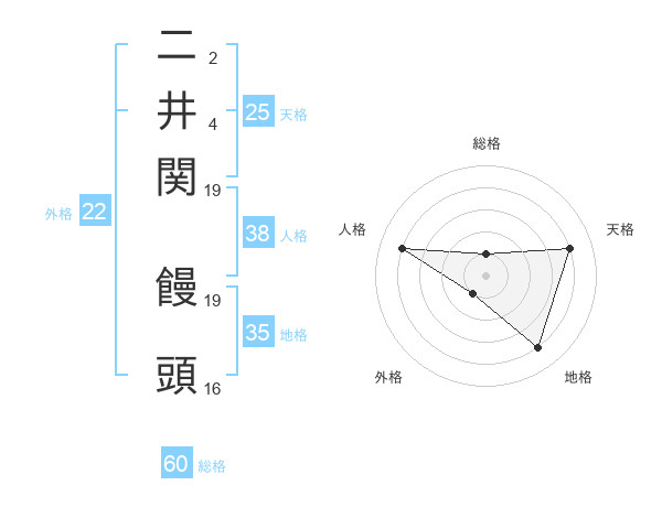 二井関 饅頭さんを姓名の画数から五運を鑑定