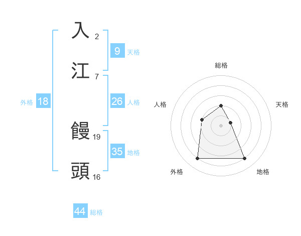 入江 饅頭さんの総格は44画の2点!