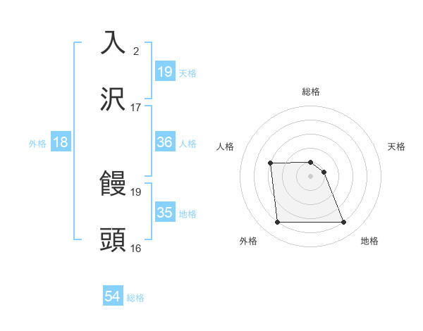 入沢 饅頭さんを姓名の画数から五運を鑑定