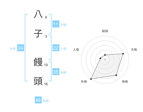 八子 饅頭さんを姓名の画数から五運を鑑定