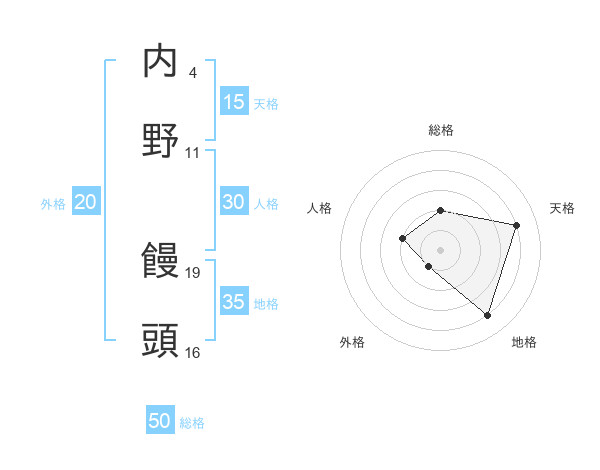 内野 饅頭さんの総格は50画の2点!