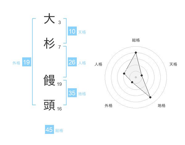 大杉 饅頭さんを姓名の画数から五運を鑑定