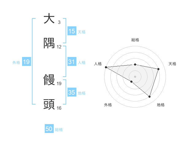大隅 饅頭さんを姓名の画数から五運を鑑定