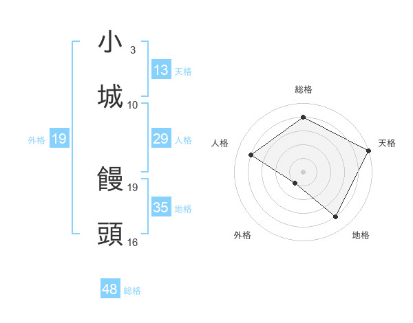小城 饅頭さんを姓名の画数から五運を鑑定