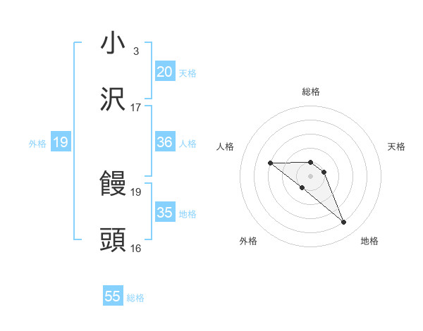 小沢 饅頭さんの総格は55画の1点!