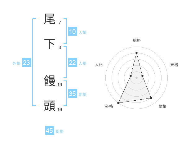 尾下 饅頭さんの総格は45画の4点!