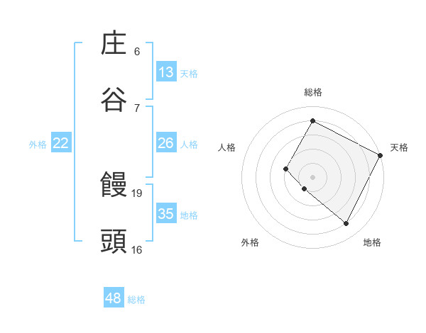庄谷 饅頭さんの天格は13画の5点!