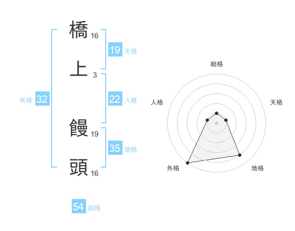 橋上 饅頭さんを姓名の画数から五運を鑑定