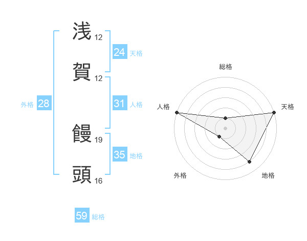 浅賀 饅頭さんの総格は59画の1点!