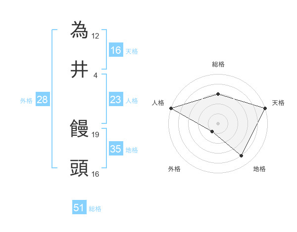 為井 饅頭さんを姓名の画数から五運を鑑定
