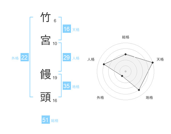 竹宮 饅頭さんの総格は51画の3点!