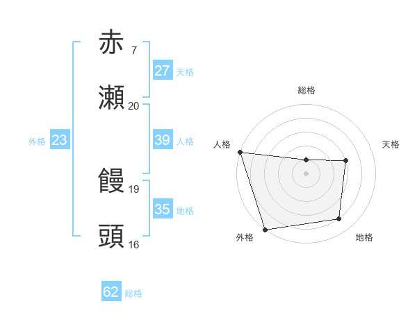 赤瀬 饅頭さんを姓名の画数から五運を鑑定