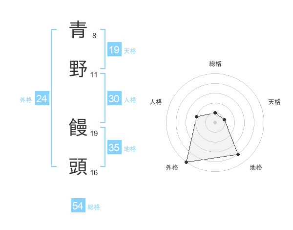 青野 饅頭さんを姓名の画数から五運を鑑定