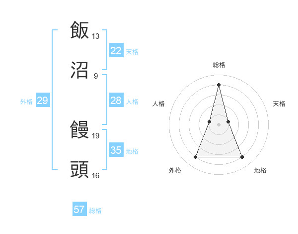 飯沼 饅頭さんを姓名の画数から五運を鑑定