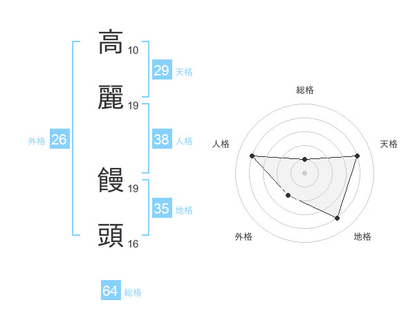 高麗 饅頭さんの総格は64画の1点!