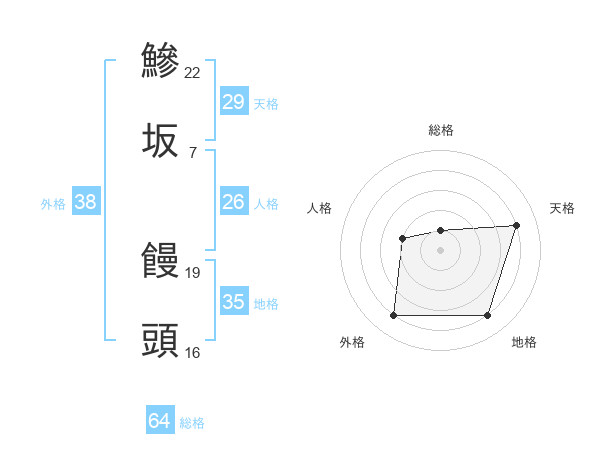 鰺坂 饅頭さんの総格は64画の1点!