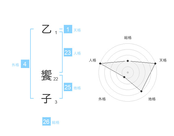 乙 饗子さんの総格は26画の2点!
