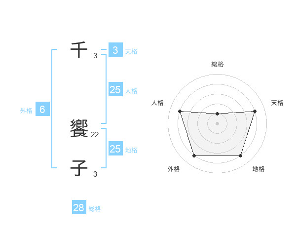千 饗子さんの総格は28画の1点!