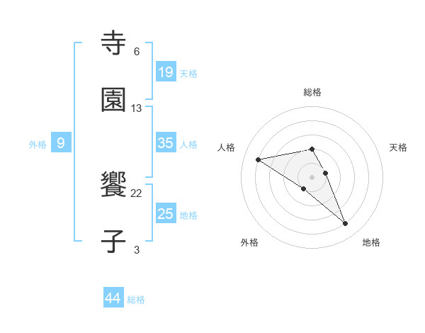 寺園 饗子さんの総格は44画の2点!