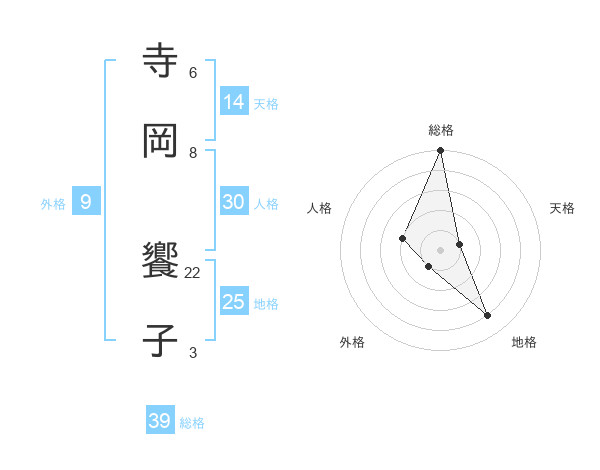 寺岡 饗子さんの総格は39画の5点!