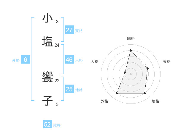 小塩 饗子さんを姓名の画数から五運を鑑定