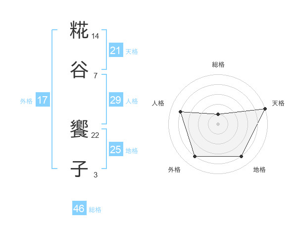 糀谷 饗子さんの外格は17画の4点!