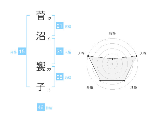 菅沼 饗子さんを姓名の画数から五運を鑑定