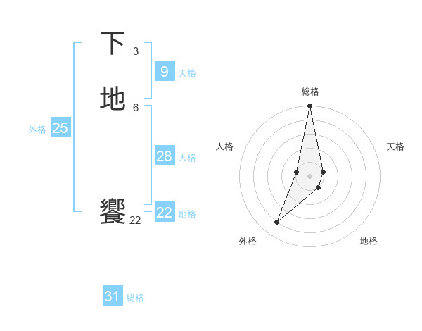 下地 饗さんの総格は31画の5点!