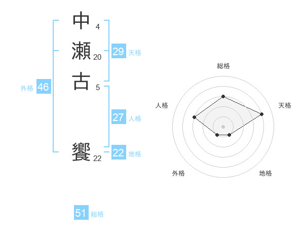 中瀬古 饗さんを姓名の画数から五運を鑑定