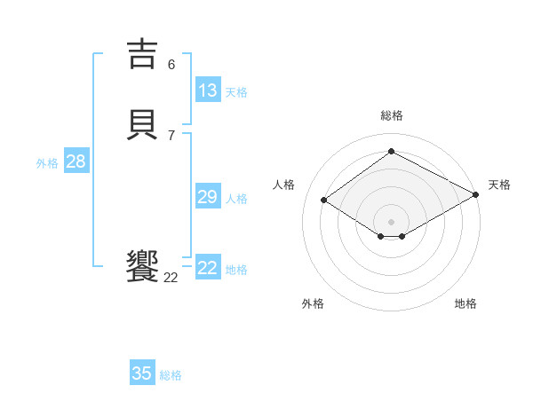 吉貝 饗さんを姓名の画数から五運を鑑定