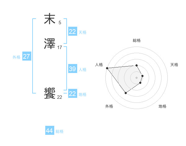 末澤 饗さんを姓名の画数から五運を鑑定