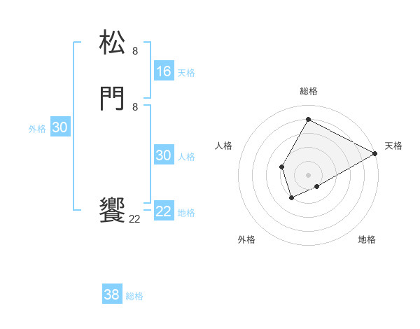 松門 饗さんの総格は38画の4点!