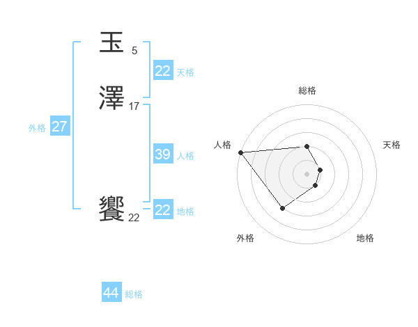 玉澤 饗さんを姓名の画数から五運を鑑定
