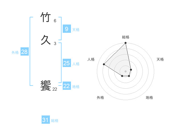 竹久 饗さんの総格は31画の5点!