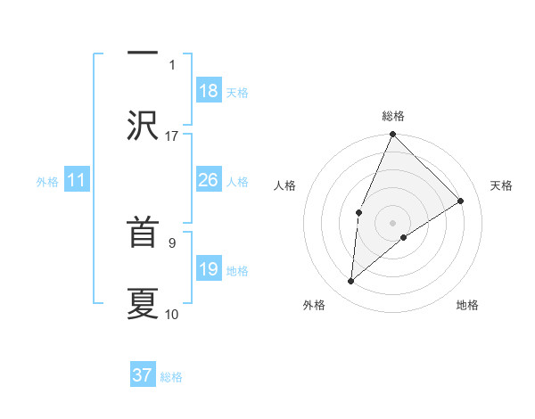 一沢 首夏さんを姓名の画数から五運を鑑定