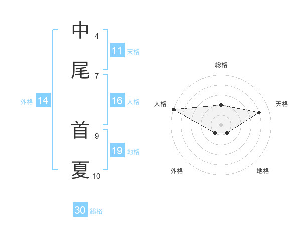 中尾 首夏さんの総格は30画の2点!