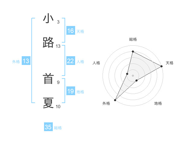小路 首夏さんの外格は13画の5点!